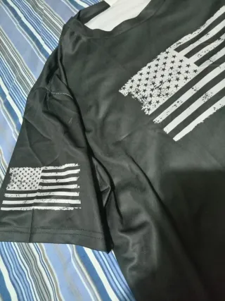 Camiseta de manga corta Talla XXL con un diseño de la bandera estadounidense. Ideal para un estilo casual. Es de poliéster y es NUEVA A ESTRENAR - Estampado de bandera desgastada en el pecho. - Bandera americana en la manga izquierda. NO HAGO ENVÍOS NI SE REBAJA EL PRECIO. ENTREGO EN EL PRAT DE LLOBREGAT