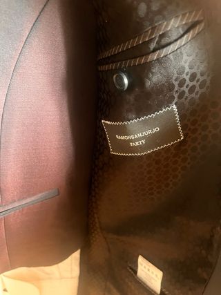 Traje de novio de la marca Ramon Sanjurjo. - Color vino . - Modelo Party. Costo 1800€