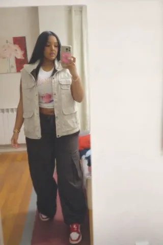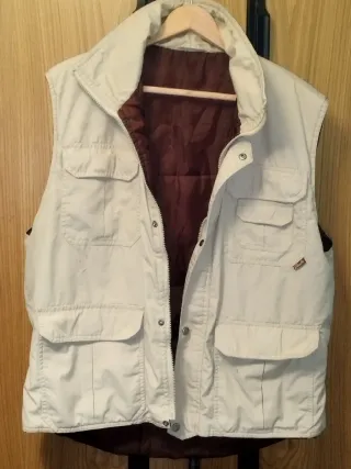 Características principales: Múltiples bolsillos: Cuenta con 4 bolsillos frontales de gran capacidad (dos superiores y dos inferiores con solapa). Cierre doble: Cremallera frontal completa reforzada con botones de presión. Detalles de diseño: Cintura elástica en los laterales para un mejor ajuste al cuerpo y cuello alto para proteger del frío. Tejido: Exterior resistente y forro interior suave acolchado. Estado de la prenda: La prenda está en buen estado estructural, pero presenta algunas manchas de uso visibles en las fotos (pequeñas marcas oscuras en la zona frontal y trasera). Ideal para quien busque un look usado auténtico