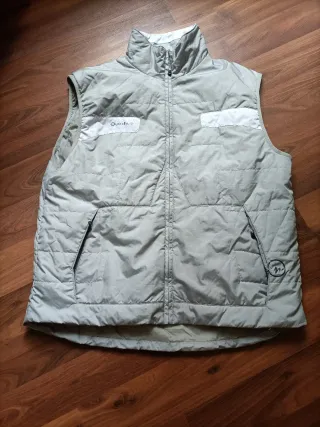 Chaleco acolchado de la marca Quechua, en color gris. Ideal para actividades al aire libre. - Cierre de cremallera frontal. - Dos bolsillos laterales con cremallera. - Cuello alto. - Detalle reflectante en el pecho.