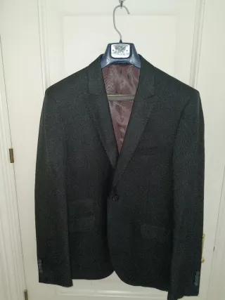Como nueva. El tejido de terciopelo está impecable, sin marcas de presión ni zonas desgastadas. Muy poco uso. • Detalles técnicos: • Marca: Zara Man (Made in Portugal). • Talla: EUR 48 / USA 38 (Equivale a una M). • Color: Negro intenso. • Estilo: Corte entallado, ideal para cenas, fiestas o eventos nocturnos. Forro interior satinado.