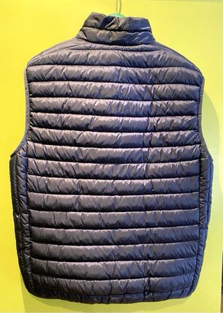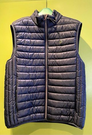 Chaleco de la marca Pedro del Hierro en color azul. Está nuevo, me lo regaló mi mujer de Navidad y ha perdido el ticket de compra. En Pedro del hierro cuesta 169€ pero mi mujer lo ha comprado en rebajas con él 30% de descuento y ha pagado 119€ - Cierre de cremallera frontal. - Bolsillos laterales con cremallera. - Detalle de logo en el pecho.
