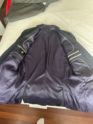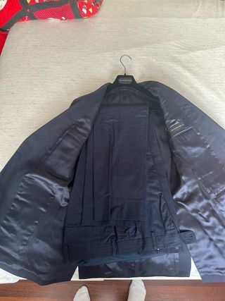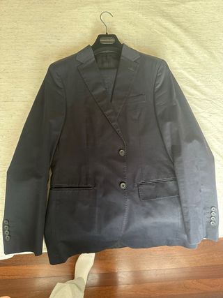 Vendo traje completo (pantalón más americana), puesto solo 2 veces para eventos. Como nuevo prácticamente. De la marca Zara. Ideal para bodas, celebraciones, etc. Medidas del traje: *Pantalón* : Talla 36, Zara Largo 90 cm ( se puede sacar bajo, 4 cm) *Chaqueta*: talla 44 . Ancho hombros: 44 cm . Largo manga : 63 cm