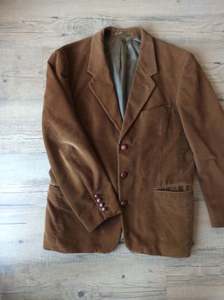 Chaqueta de pana color marrón clara. Todos los botones y forro perfecto. Alguna marca en espalda. Se adjuntan fotos detalle. Poco usada. Vintage.