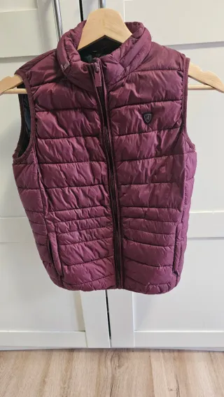 Chaleco sin mangas de la marca Alvaro Moreno en color morado. Es una prenda ligera y versátil. TALLA 13/14 - Diseño acolchado. - Cierre de cremallera frontal. - Cuello alto.