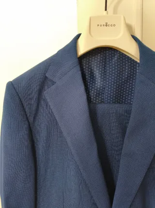 Elegante traje de la marca Puro Ego. - Chaqueta de corte clásico. - Pantalón a juego. - Diseño moderno y versátil. - Talla 48 - Con su bolsa incluida