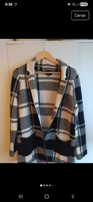 Americana de punto con un diseño a cuadros. - Diseño a cuadros en blanco y negro. - Tejido de punto. - Talla S.
