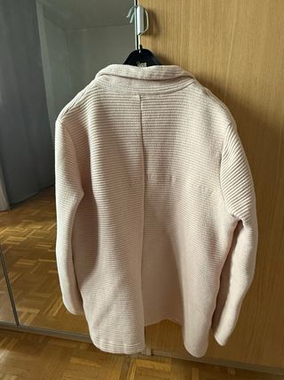Americana de punto en tono rosa palo. Presenta un diseño clásico con solapas y un botón. - Tejido texturizado. - Dos bolsillos delanteros.