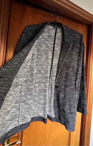 Americana de punto de Zara en color gris. - Cuello solapa. - Cierre de dos botones. - Bolsillos de solapa en la parte delantera.