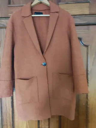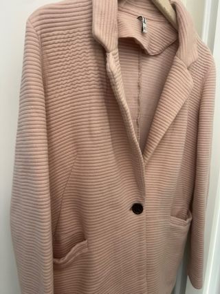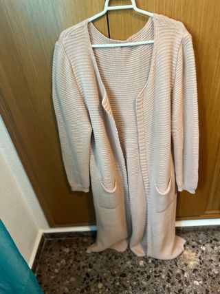 Abrigo largo de punto en color rosa, ideal para añadir una capa extra a tu atuendo. - Diseño abierto. - Bolsillos frontales. - Tejido de punto con textura. Abrigo beige atemporal y americana de chica. Precio unidad, si te llevas varias cosas hago precio