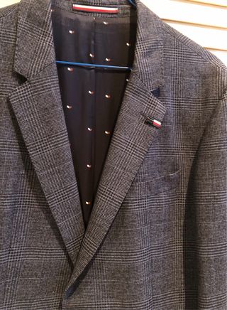 Americana de la marca Tommy Hilfiger con un diseño elegante. - Patrón de cuadros sutil. - Forro interior con estampado de puntos. - Detalle de etiqueta de la marca en el bolsillo interior. Se a usado 2 veces.