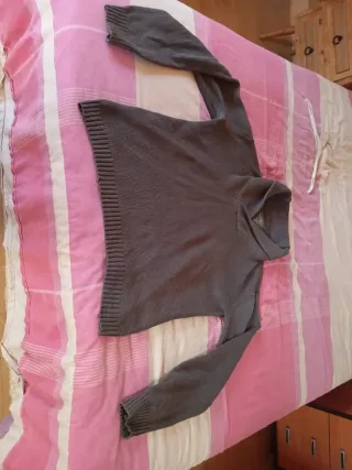 Americana de punto en color gris. Un básico versátil para cualquier armario. - Cuello de solapa. - Bolsillos delanteros. - Puños con vuelta. Usada un par de veces