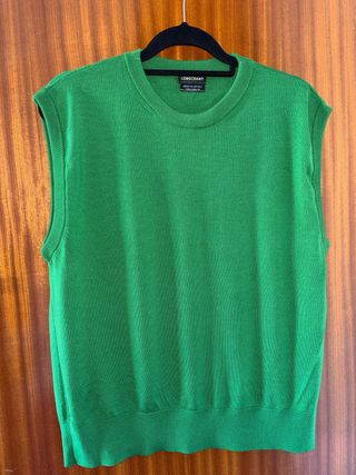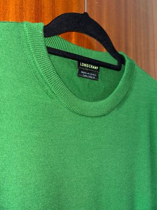 Chaleco de punto de la marca Longchamp. Lana merina 100% - Color verde vibrante. - Tejido suave y cómodo. - Diseño clásico de cuello redondo