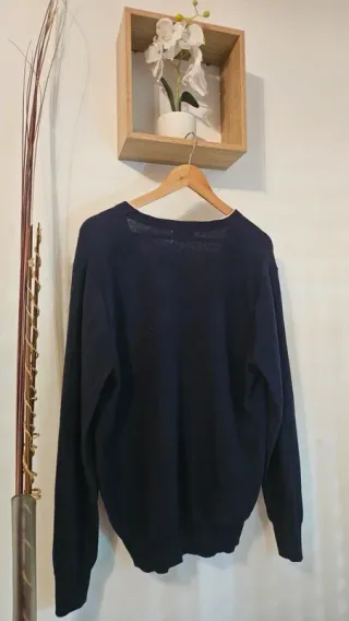 DOCKERS CARDIGAN AZUL MARINO - Talla M 100% Algodón | Ribete Blanco 🏷️ DOCKERS BY LEVI'S - marca americana clásica, calidad duradera ✨ DETALLES Color azul marino con ribetes blancos Cuello en V, 5 botones frontales Detalle interior naranja en cuello Punto fino liso, suave y transpirable Fit regular clásico 📏 MEDIDAS APROX Pecho: 96-102cm | Altura: 1.70-1.85m Complexión media/atlética ✅ ESTADO: BUENO Uso normal visible, sin manchas ni roturas, botones intactos 💡 COMBINA CON Camisa + chinos (smart casual) o camiseta + jeans (look college) Estilo preppy atemporal perfecto para entretiempo #Dockers #Cardigan #TallaM #AzulMarino