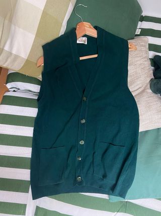 Chaleco de lana en color verde oscuro. Es un chaleco de punto con botones. - Material: Lana. - Color: Verde oscuro. - Diseño: Chaleco de punto. - Cierre: Botones.