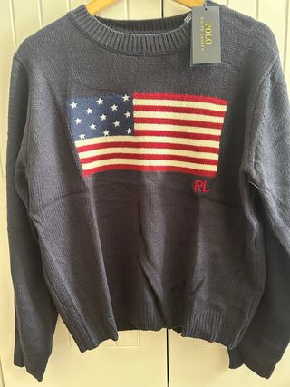 Jersey de punto de Ralph Lauren con un diseño inspirado en la bandera de Estados Unidos. - Detalle de la bandera americana en el pecho. - Iniciales RL bordadas. Talla M