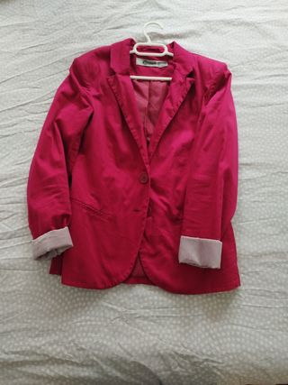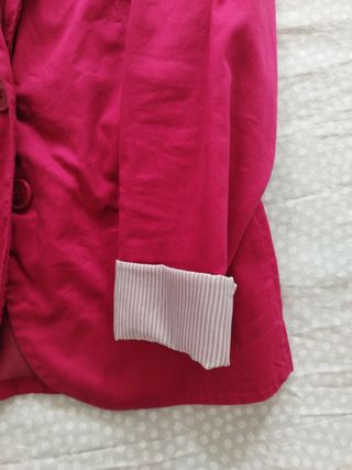 Se vende americana color fuscia con dos botones delanteros. Queda entallada. Muy mona para poner con vaquero, pantalón claro u oscuro. Forro de rayas que se puede poner visto en la manga Entrega en mano en A Coruña. El comprador deberá recogerlo. Hago envíos. Gastos no incluidos a cargo del comprador