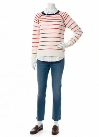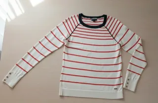 ⚓ Jersey Nautica auténtica (fundada en 1983), ícono del estilo náutico preppy y herencia de Nueva Inglaterra. 🎨 Diseño Bretón clásico: Rayos horizontales crema/coral blanco y rojo. Detalles distintivos: ribetes azul marino contrastantes (cuello, sisas raglán, bajo) y 3 botones metálicos dorados con logo Nautica en puños. Plaza "NAUTICA" dorada lateral. Costuras raglán. 🧵 100% Algodón de calidad (Fabricado en China). Medidas en fotos. 🌟 Combina con:Preppy, Náutica, Coastal Grandma, Ivy League, Americana Classic y Maritime Chic. Ideal con chinos y náuticos o jeans y zapatillas. #Nautica #NauticaSweater #JerseyMarinero #NewEngland