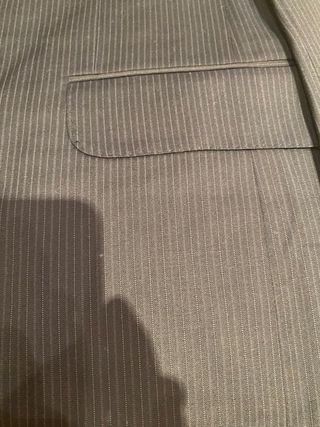 Bonito y elegante traje de rayas en gris, esta de dos puestas, talla chaqueta 50, pantalón 42-44. Está como nuevo.