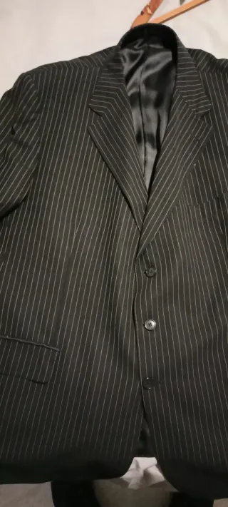 Chaqueta de traje,de la marca Cortefiel,es entre negro y hace como una raya en marrón.Hay dos fotos.