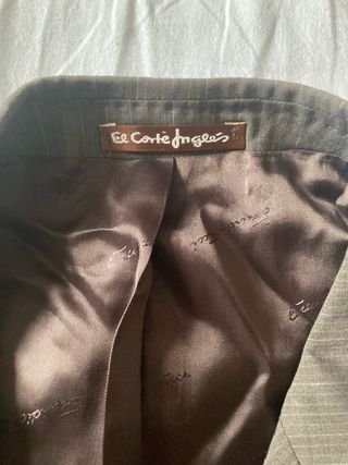 Traje elegante de raya diplomática para hombre.El Corte Ingles ( 60% lana, 40% poliester) - Chaqueta con solapa de muesca. - 3 Bolsillos interiores - Cierre de dos botones. - Bolsillos de solapa.