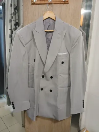 Elegante blazer DEVRAO de rayas diplomáticas, talla L, para hombre, en excelente estado tras un solo uso. Corte moderno, cierre de botones y bolsillos frontales. ¡El valor se dispara! Incluye el pantalón del conjunto, talla 42, impecable, añadiendo un extra irresistible por el precio del blazer. Tela premium, ideal para eventos formales. Ahorra frente a su valor original (80-120€). Entrega en [BCN] o envío. ¡Asegúralo ya! #Blazer #RayaDiplomática #TrajeHombre #Wallapop