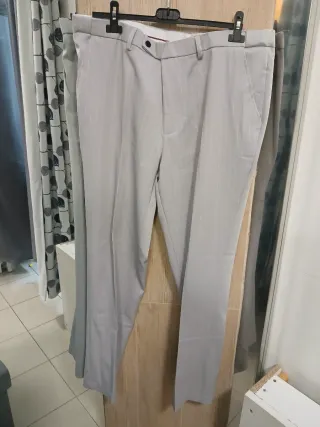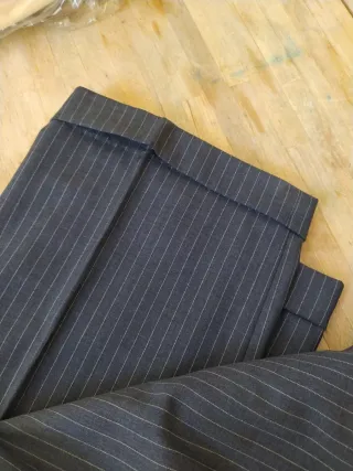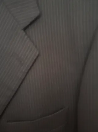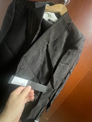Traje de Zara Man con un diseño de rayas verticales. - Chaqueta con solapa de muesca. talla 52 - Cierre de tres botones. - Bolsillos frontales con solapa. - Forro interior azul. - pantalon talla 44