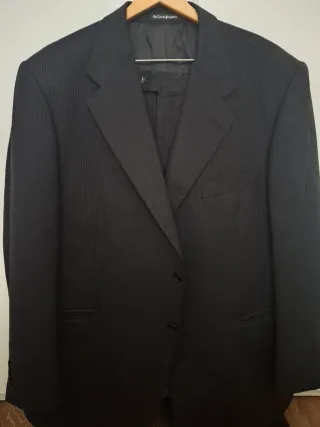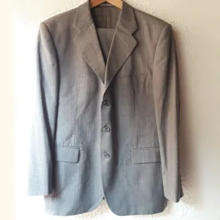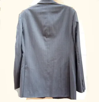 Elegante traje de chaqueta de la marca Emidio Tucci. Presenta un diseño clásico con finas rayas verticales que aportan un toque de distinción. - Chaqueta de corte recto. - Dos bolsillos frontales con solapa. - Cierre de dos botones. Solo puesto 1 vez