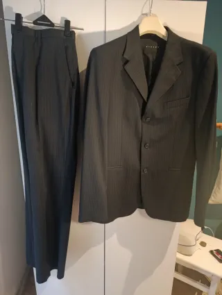 Conjunto de traje completo de la marca Sisley. - Chaqueta con solapas y cierre de botones. - Pantalón de vestir con raya diplomática.