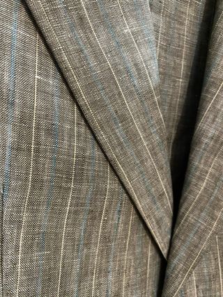 -PRECIO NEGOCIABLE- Traje/Chaqueta americana, a rayas azul y blanco, marca "Zara". Usado, pero en muy buen estado. Solo tiene unas pequeñas manchas en el interior Material exterior: 57% Lino, y 43% Viscosa. Forro Interior: 100% Acetato.