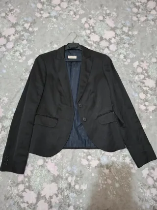 Elegante americana de la marca Máximo Duty. Un básico versátil para cualquier ocasión. - Corte entallado. - Cierre de un botón. - Bolsillos de solapa. - Forro interior a rayas. De tejido fino y corte clásico. Ideal para looks de trabajo, entrevistas, eventos o para combinar con vestidos. Muy bien cuidada, en buen estado general. Prenda versátil y atemporal que combina con todo. Detalles: Marca: Máximo Duty Talla 38 Color negro Tejido fino Corte elegante 📦 Envío preferentemente por Wallapop. Tengo más prendas elegantes disponibles en mi perfil.