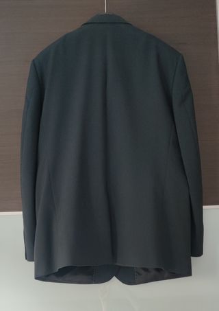 Americana/ chaqueta de traje color marron chocolate con raya diplomática fina. Marca Massimo Dutti. En buen estado. De lana y fabricada en Italia. 2 bolsillos exteriores uno de ellos con un bolsillito extra interno. Bolsillos internos: en lado izquierdo con cierre boton. En lado derecho bolsillo amplio sin cierre y otros 2 más pequeños. Largo total 80 cm. Ancho bajo axilas 55 cm. Largo mangas 65 cm. Ancho hombros 46 cm. En el forro interior a 2 centimetros del bajo tiene 3 agujeritos de unos milímetros que puesta no se ve. ver ultima foto.