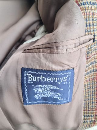 Chaqueta de la marca Burberrys en color marrón. - Etiqueta interior con el logo de la marca. - Diseño clásico. Fondo marrón con rayas granate y azul oscuro. Nota: sólo envío por wallapop.