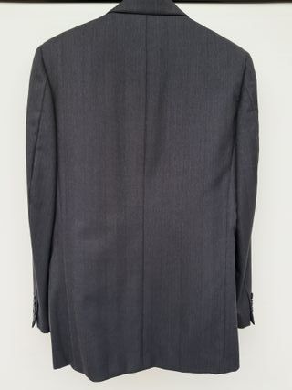 Traje gris marengo de chaqueta y pantalón con un sutil rayado vertical. - Chaqueta de corte clásico. - Pantalón a juego. - Diseño elegante y versátil. Nota: sólo envío por wallapop