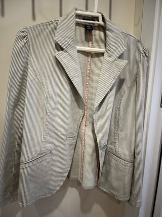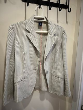 Americana de la marca Gap con un diseño de rayas verticales en tonos beige y blanco. Presenta un corte clásico y elegante. - Cierre de un botón. - Bolsillos frontales. - Forro interior. - Cuello solapa.
