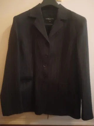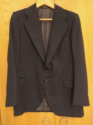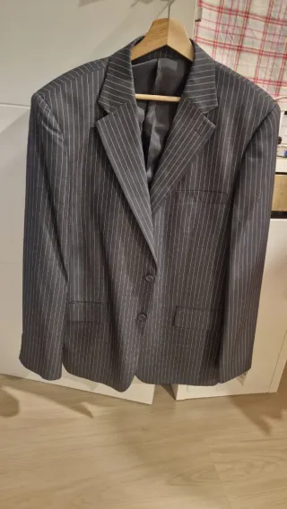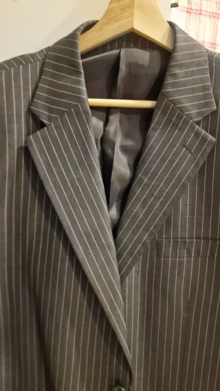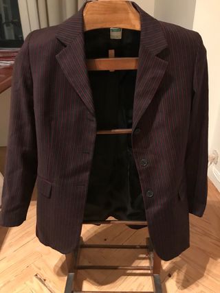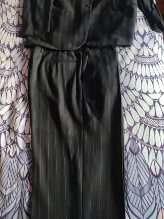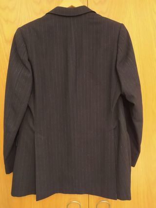 Traje de chaqueta y pantalón en muy buen estado de corte clásico. Talla entre una S y una M, para persona entre 1.50 y 1.60 CMS.