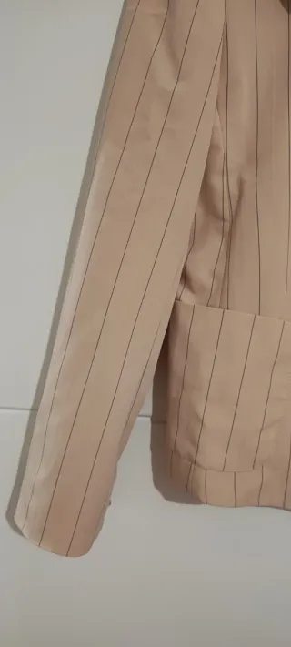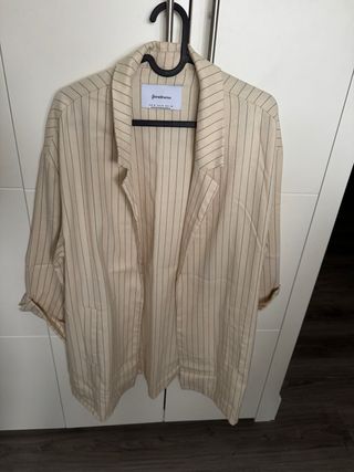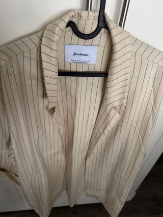Americana de Stradivarius con un diseño de rayas verticales. - Color beige con rayas grises. - Talla M (38/10).