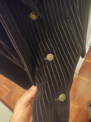 Americana de pana con un diseño a rayas, ideal para un toque retro. - Estilo vintage. - Tejido de pana. - Patrón de rayas verticales.