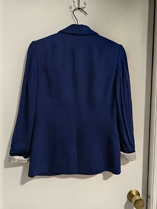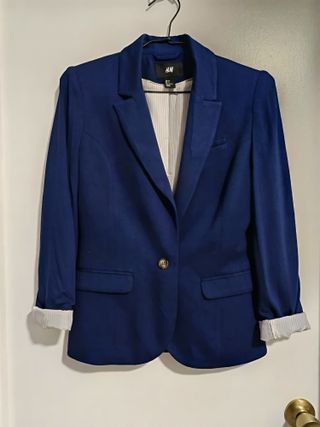 Americana de H&M en color azul. Un básico elegante para cualquier ocasión. - Cierre de un botón. - Puños vueltos con forro a rayas.