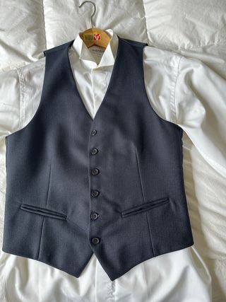 Elegante traje de tres piezas con raya diplomática sin uso. Precio en tienda 199 euros. - Chaqueta - Chaleco - Pantalón cualquier duda o sugerencia no dudéis en contactarme