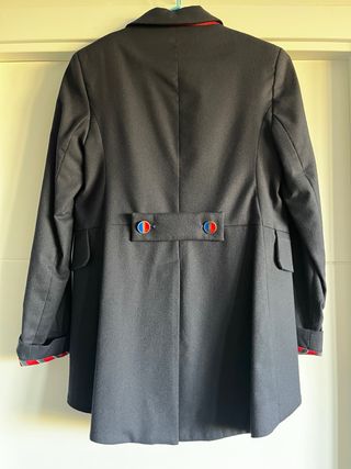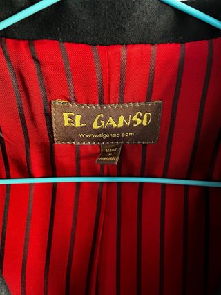 Americana de la marca El Ganzo en color azul con detalles multicolor. Presenta un diseño elegante y moderno. - Dos botones decorativos en la parte trasera. - Puños con forro a rayas rojas y verdes. - Cuello con ribete rojo.