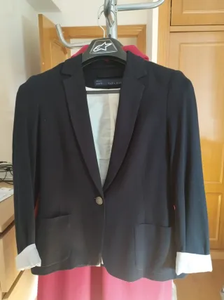 Americana elegante de Zara, perfecta para cualquier ocasión. - Color negro. - Diseño clásico con solapas. - Forro interior a rayas. NO ENVÍO