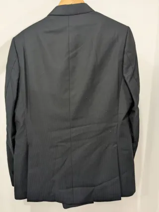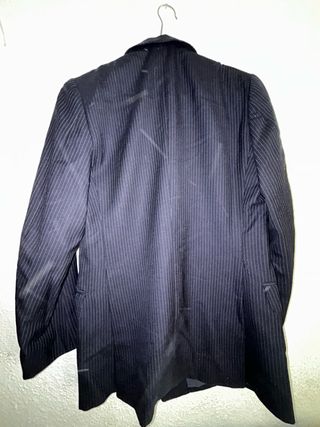 Elegante traje de raya diplomática. - Diseño clásico y sofisticado. - Corte moderno. - Está algo rozado el pantalón a la altura del bolsillo.