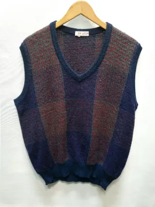 Chaleco de punto Loewe con cuello en V y diseño de rayas verticales. - Diseño de rayas verticales. - Cuello en V. - Sin mangas. Pecho 100cm. Largo 65cm.