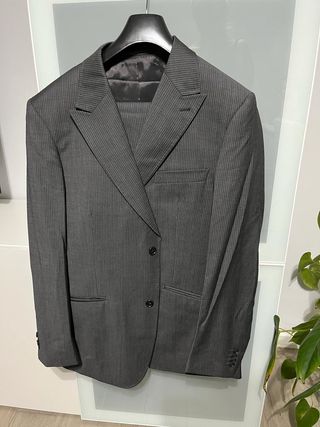 Vendo traje gris oscuro con raya diplomatica de la marca Jorge Ramirez Talla chaqueta 50 Talla pantalon 44 Esta practicamente nuevo, dos puestas. Regalo la camisa azul y la corbata que se ven en las fotos para que tengas el pack completo.