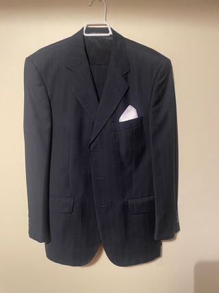 Traje caballero. Azul marino con rayas diplomática. Muy bonito. De muy buena calidad. Tiene muy buena caída y mucho estilo. Talla 54. Solo se ha usado 1 día.