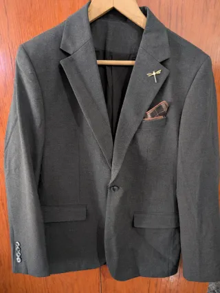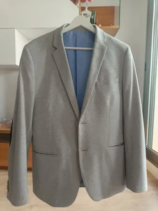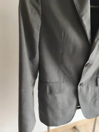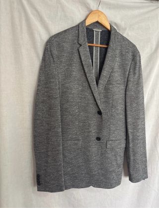 Americana de vestir para hombre de la marca Zara. Un básico elegante para cualquier ocasión. - Color gris jaspeado. - Cierre de dos botones. - Bolsillos frontales que aun siguen cerrados,sin quitar la costura que traen al comprar