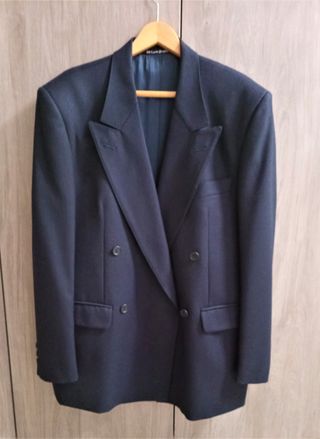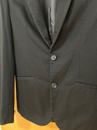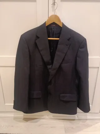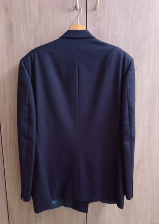 Americana de vestir de la marca Emidio Tucci comprada en El Corte Inglés, color azul marino, talla 48, 100% lana virgen y forro 100% viscosa, puesta en sólo 2 bodas. Medidas: hombros 48 cm, sisa 55 cm, largo espalda 76 cm y largo brazo 61 cm.