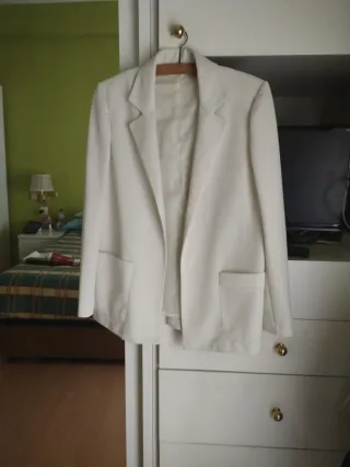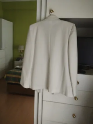Americana de vestir en color beige, sin estrenar. Talla 46, en tienda esta a 70 como se ve en la etiqueta Cualquier duda preguntar. - Cierre de dos botones. - Bolsillos frontales. - Cuello solapa.