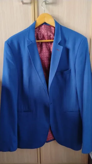 Americana de vestir de la marca Celopman. - Color azul. - Cierre de dos botones. - Bolsillos frontales. - Bolsillo en el pecho. - Usado una vez. - Talla 54 EUR